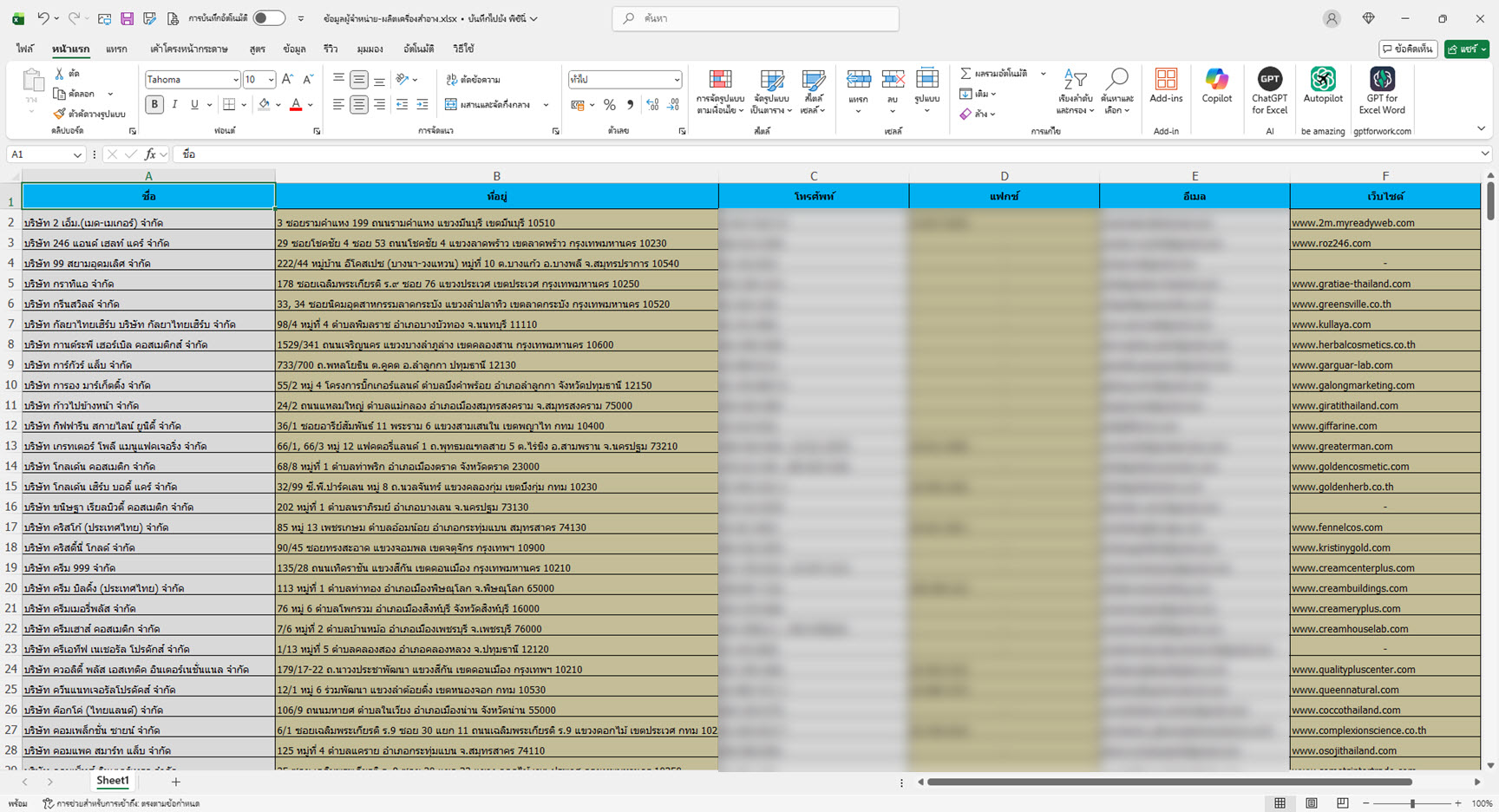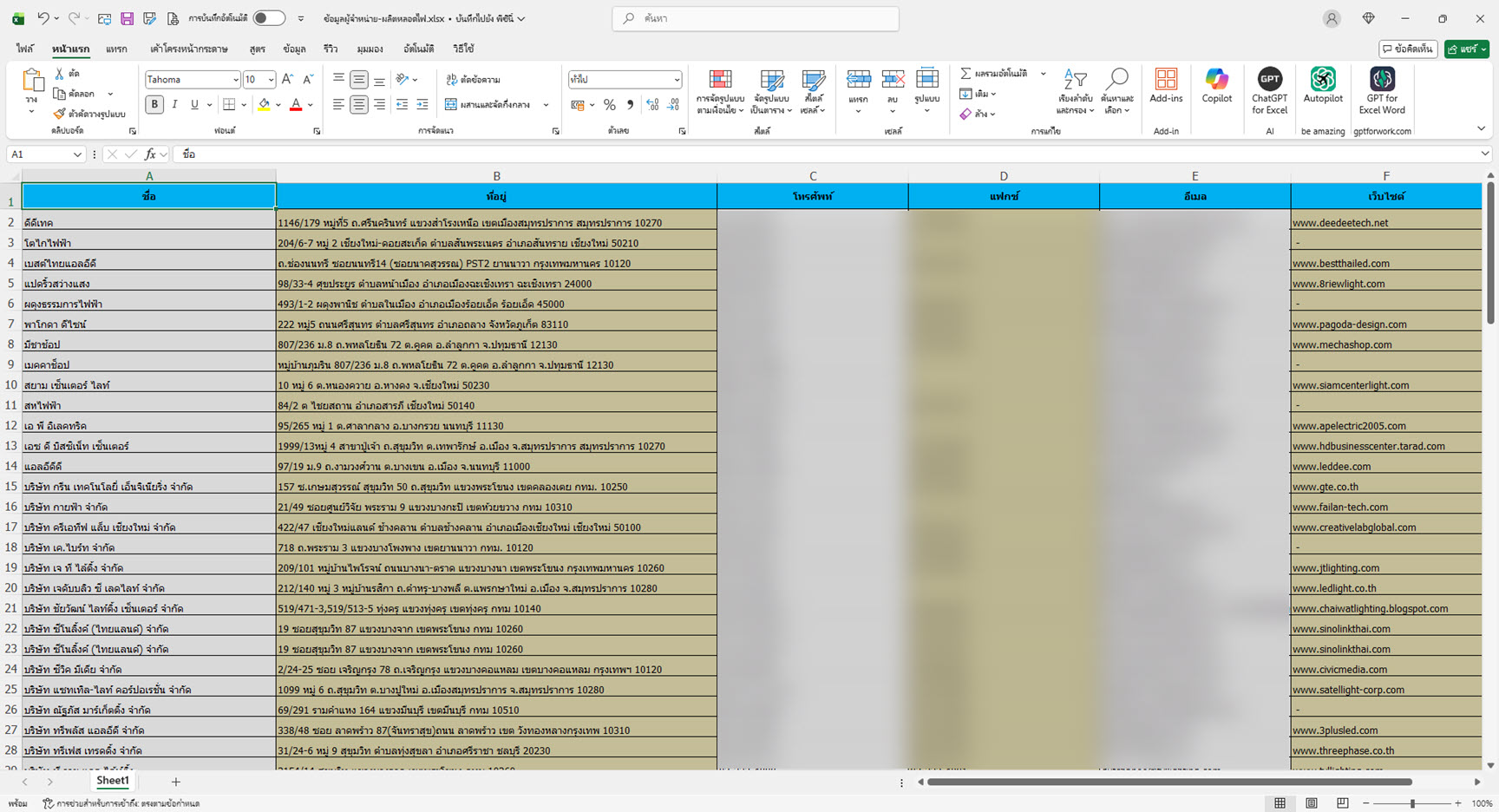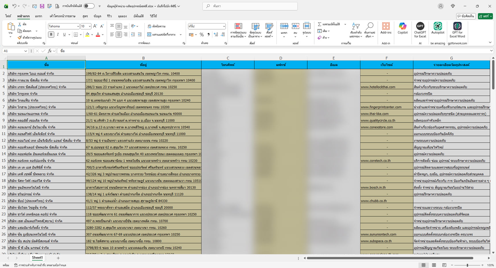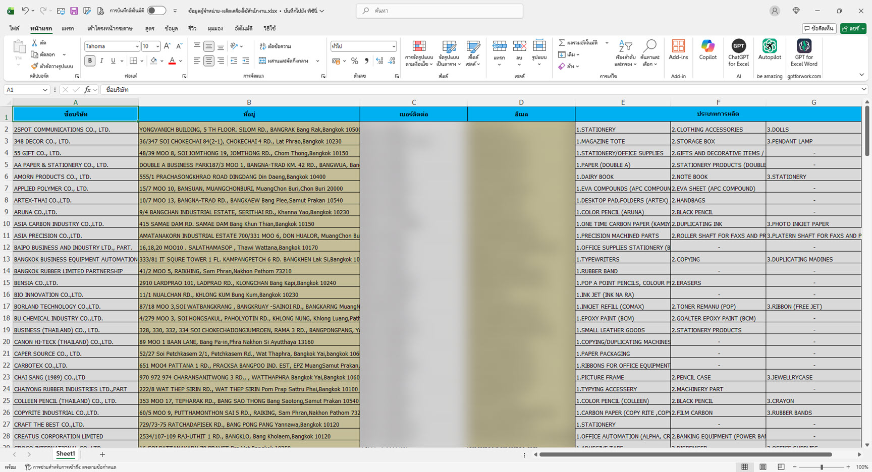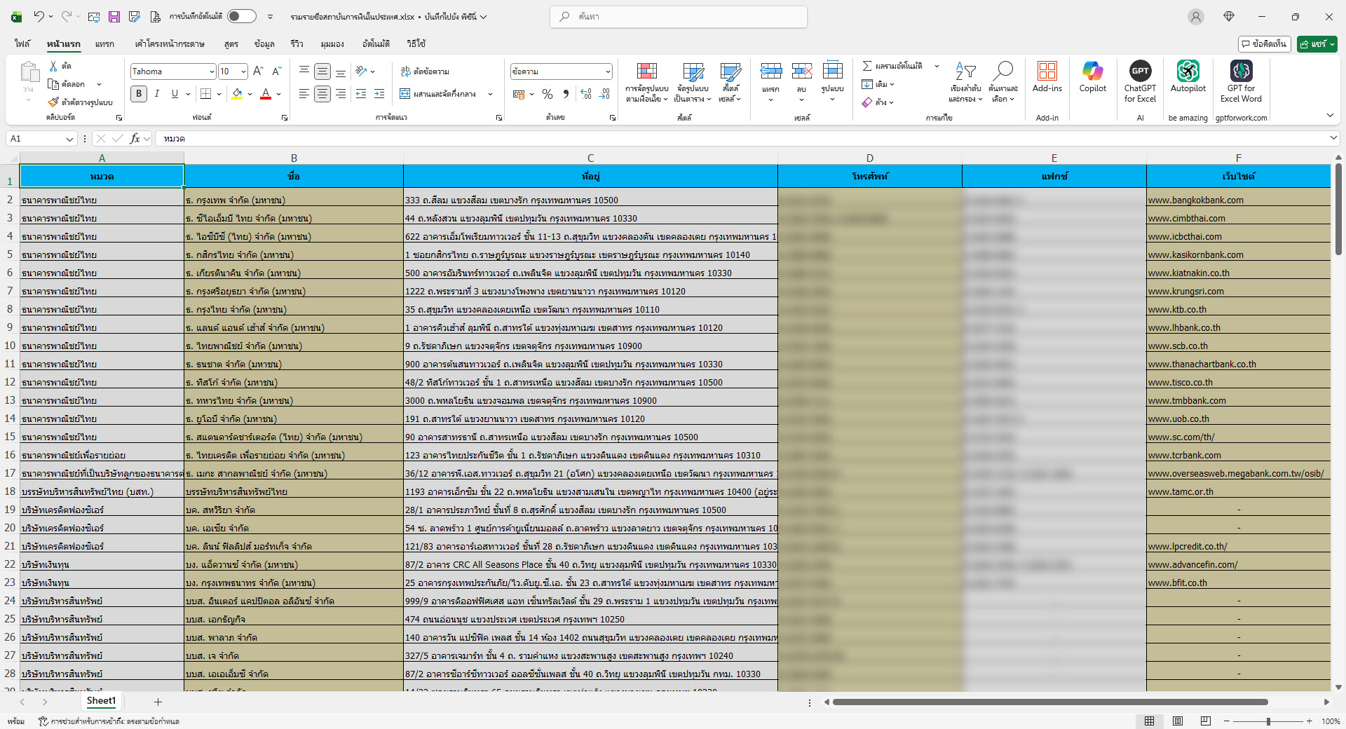 ข้อมูลผู้ติดตั้ง-วางระบบเครื่องจักรกล , ข้อมูลผู้ติดตั้ง-วางระบบไฟฟ้า , ข้อมูลผู้จำหน่าย-ผลิตเครื่องใช้สำนักงาน , ข้อมูลผู้จำหน่าย-ผลิตวัสดุก่อสร้าง , ข้อมูลผู้จำหน่าย-ผลิตแอร์ , ข้อมูลผู้จำหน่าย-ผลิตอุปกรณ์ไฟฟ้า , ข้อมูลผู้จำหน่าย-ผลิตหลอดไฟ , ข้อมูลผู้จำหน่าย-ผลิตอุปกรณ์เซฟตี้ , ข้อมูลผู้จำหน่าย-ผลิตเครื่องสำอาง , ข้อมูลผู้จำหน่าย-ผลิตด้านธุรกิจกาแฟ , ข้อมูลผู้ส่งออกข้าวและโรงสีข้าว , รวมรายชื่อสถาบันการเงินในประเทศ , รวมรายชื่ออาคาร-โรงงานควบคุม , รวมรายชื่อร้านขายยาแผนปัจจุบันในกรุงเทพฯ , รวมรายชื่อโรงพยาบาล-คลีนิกในประเทศ , รวมรายชื่อสถานศึกษา-หน่วยงานราชการ , รวมรายชื่อกลุ่มสหกรณ์ในประเทศ , รวมเว็บไซต์เทศบาล