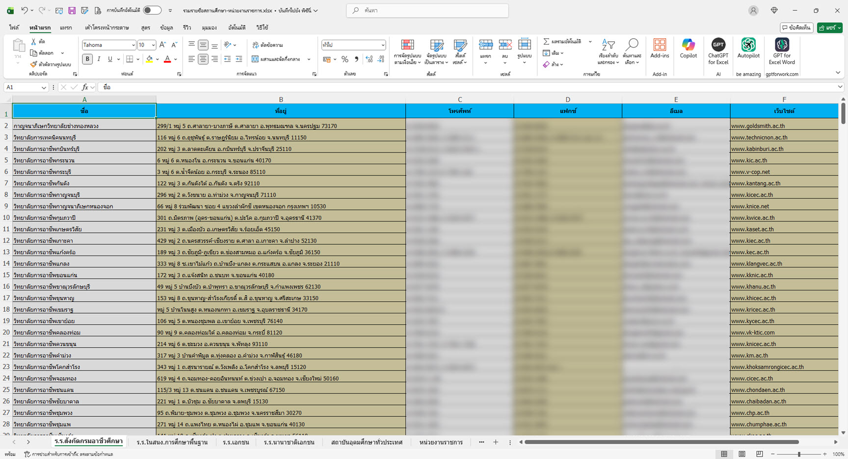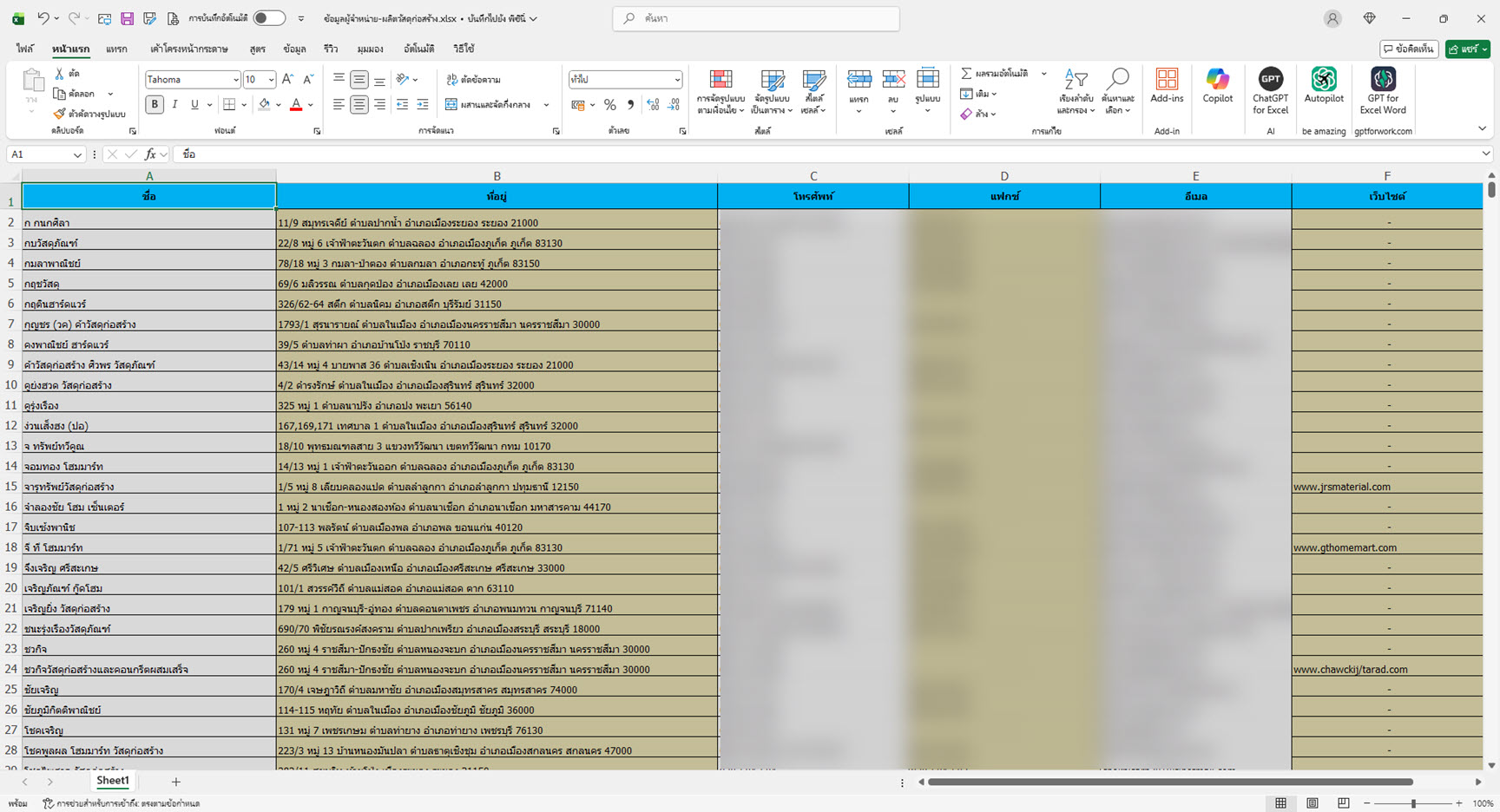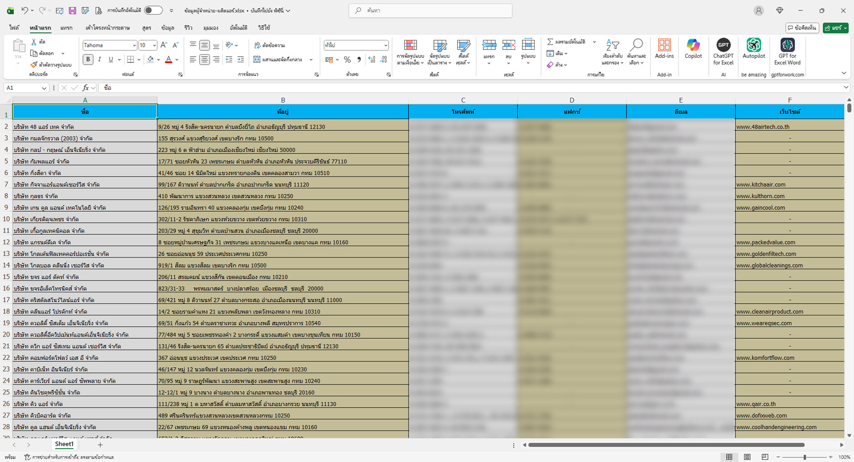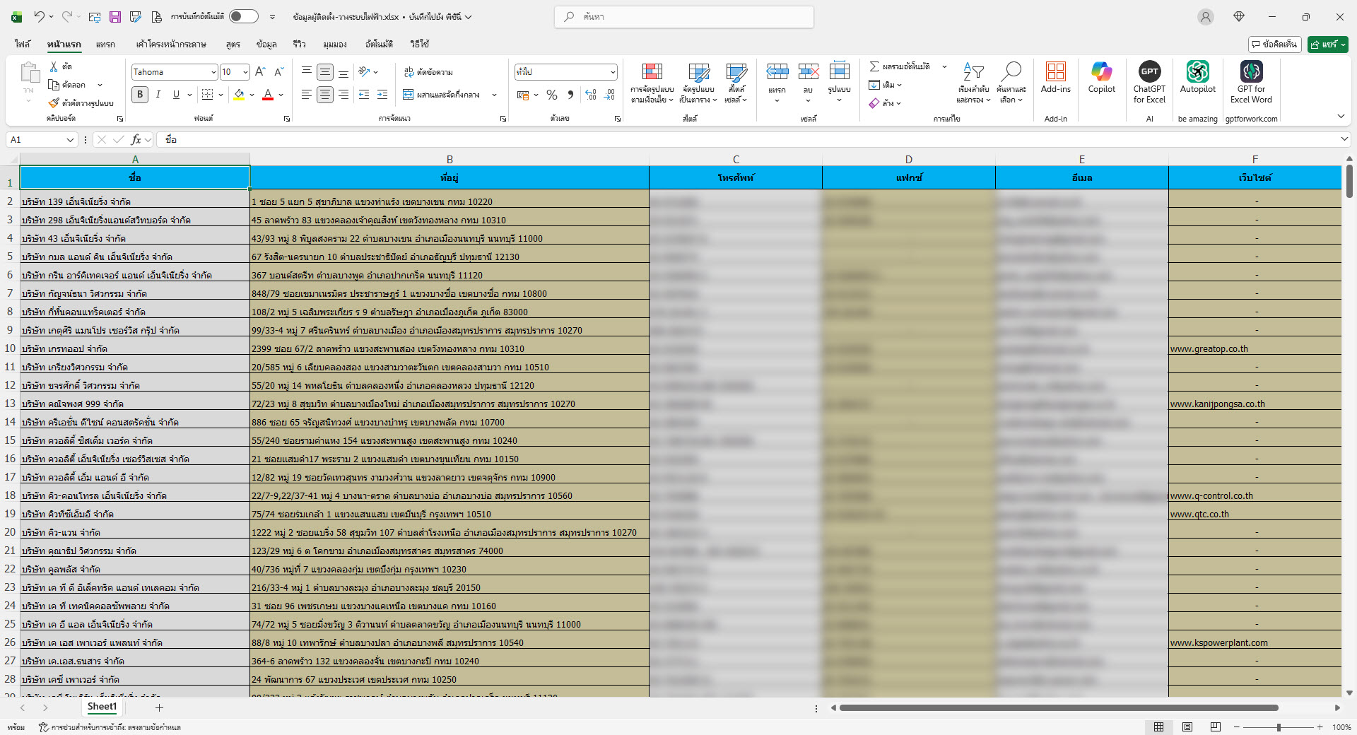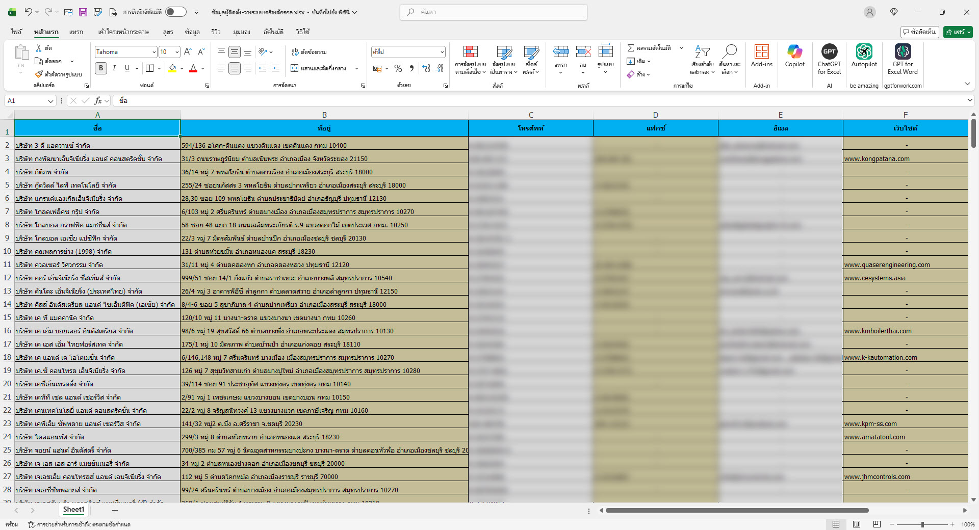 ข้อมูลผู้ติดตั้ง-วางระบบเครื่องจักรกล , ข้อมูลผู้ติดตั้ง-วางระบบไฟฟ้า , ข้อมูลผู้จำหน่าย-ผลิตเครื่องใช้สำนักงาน , ข้อมูลผู้จำหน่าย-ผลิตวัสดุก่อสร้าง , ข้อมูลผู้จำหน่าย-ผลิตแอร์ , ข้อมูลผู้จำหน่าย-ผลิตอุปกรณ์ไฟฟ้า , ข้อมูลผู้จำหน่าย-ผลิตหลอดไฟ , ข้อมูลผู้จำหน่าย-ผลิตอุปกรณ์เซฟตี้ , ข้อมูลผู้จำหน่าย-ผลิตเครื่องสำอาง , ข้อมูลผู้จำหน่าย-ผลิตด้านธุรกิจกาแฟ , ข้อมูลผู้ส่งออกข้าวและโรงสีข้าว , รวมรายชื่อสถาบันการเงินในประเทศ , รวมรายชื่ออาคาร-โรงงานควบคุม , รวมรายชื่อร้านขายยาแผนปัจจุบันในกรุงเทพฯ , รวมรายชื่อโรงพยาบาล-คลีนิกในประเทศ , รวมรายชื่อสถานศึกษา-หน่วยงานราชการ , รวมรายชื่อกลุ่มสหกรณ์ในประเทศ , รวมเว็บไซต์เทศบาล